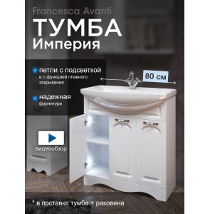 Тумба поставляется в разобранном виде; предусмотрена возможность сборки тумбы (+10% к стоимости)Эти товары входят в Комплект мебели для ванной комнаты Francesca Империя 80, 3 двери, левый, который можно купить по частям