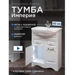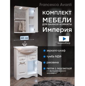 Пенал доставляется заказчику в сборе, в упаковке из картона. Комплектность поставки включает всю необходимую фурнитуру - ручки и ножки. Дверные петли оснащены доводчиками. После доставки клиенту потребуется только прикрепить ножки ко дну пенала. Все составляющие мебели сделаны в влагостойком исполнении. Фасадные панели изготовлены из МДФ, корпусные детали - из ДСП. Вся фурнитура тоже является влагостойкой. Российская компания Francesca обеспечивает гарантию своей продукции на срок 24 месяца.Эти товары входят в Комплект мебели для ванной комнаты Francesca Империя 60, с ящиками правый, который можно купить по частям