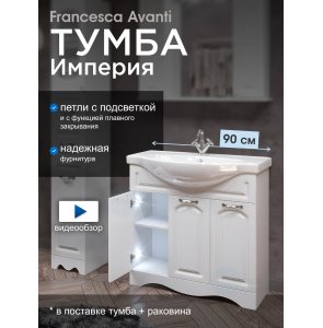 - Тумба с раковиной Francesca Империя 90 белый с подсветкой (3 двери, ум. Classic 90)