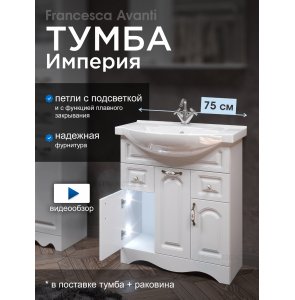 - Тумба с раковиной Francesca Империя 75 белый с подсветкой (3дв+2ящ, ум. Элеганс 75)