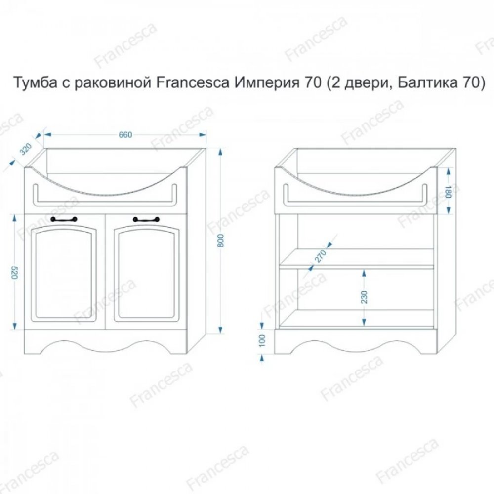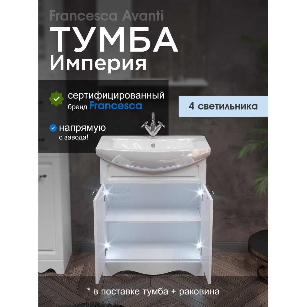 - Тумба с раковиной Francesca Империя 70 белый (2 двери, ум. Балтика 70)