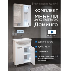 - Тумба с раковиной Francesca Доминго 55 белый, с подсветкой (2 дв.,ум. Уют 55)