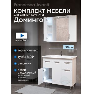 - Тумба с раковиной Francesca Доминго М 90 белый, с подсветкой (3 дв. + 2 ящ., ум. Комфорт 90)