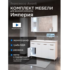 - Тумба с раковиной Francesca Доминго 120 белый, с подсветкой (2ящ+4дв, ум. Milen 120)